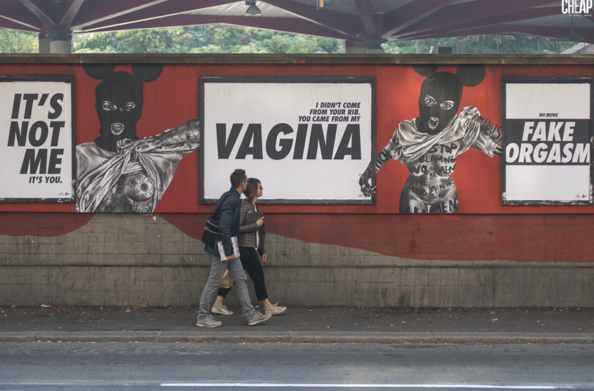Dietro al passamontagna c’è Miss Me: attivista, femminista, artista che rivendica la propria attitudine vandalica nelle strade, dove interviene con inconfondibili paste up che incarnano letteralmente i temi al centro della sua ricerca artistica – genere, razza, classe.
