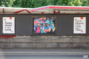 Misurandoci col tema della violenza di genere e con le sue ricadute sui corpi razzializzati così come sulla comunità LGBTQI+, ci è evidente quale sia la prospettiva politica, culturale e educativa che interseca una risposta reale: è il femminismo, questa è la nostra soluzione” dichiara CHEAP. “Nello stratificarsi dei manifesti, nella routine di questa pratica di strada, c’è tutta l’urgenza del femminismo vissuto come azione quotidiana: qualcosa che è qui ed è qui oggi, qualcosa che si può toccare, decisamente qualcosa che si può incollare”.